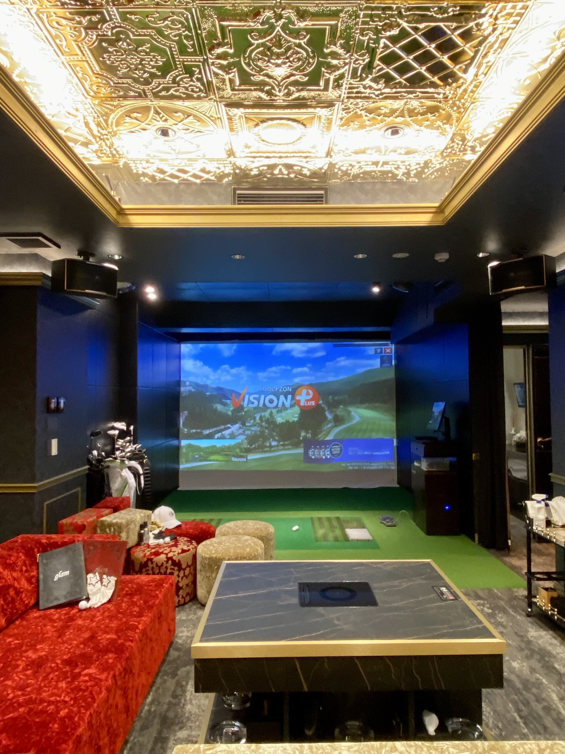 世界210以上の有名ゴルフコースがラウンドできる最新鋭のシュミレーションゴルフに投げ放題のダーツ。大型スクリーンに300本を越える高級ワインに名店のお食事まで。